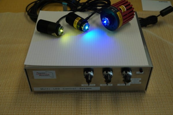 3ch PC制御 / マニュアル対応LED電源ユニット (写真のLEDはThorlabs社の製品となります。)