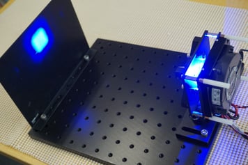 約Φ25mm径の略コリメート光源。顕微鏡の水銀ランプ照明が取り付けてある位置に置き換えます。