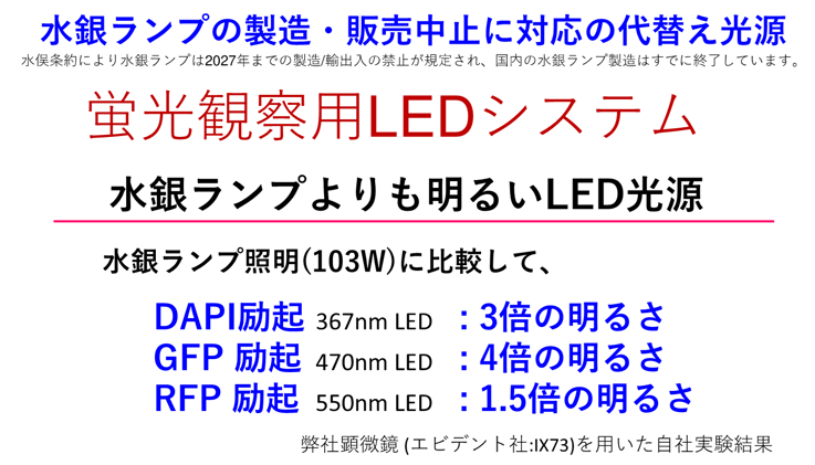 観察する蛍光試薬と顕微鏡種類をご指示くだされば、対応する光源をご提案させていただきます。