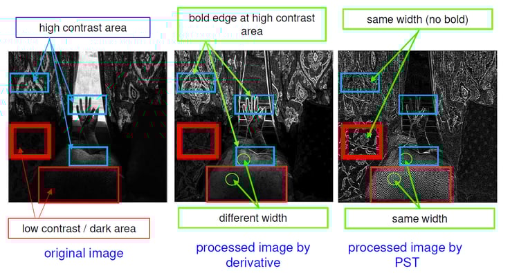 特徴1 明るさ(背景輝度)が異なる画像であっても、texture/featureを忠実に検出できる。
